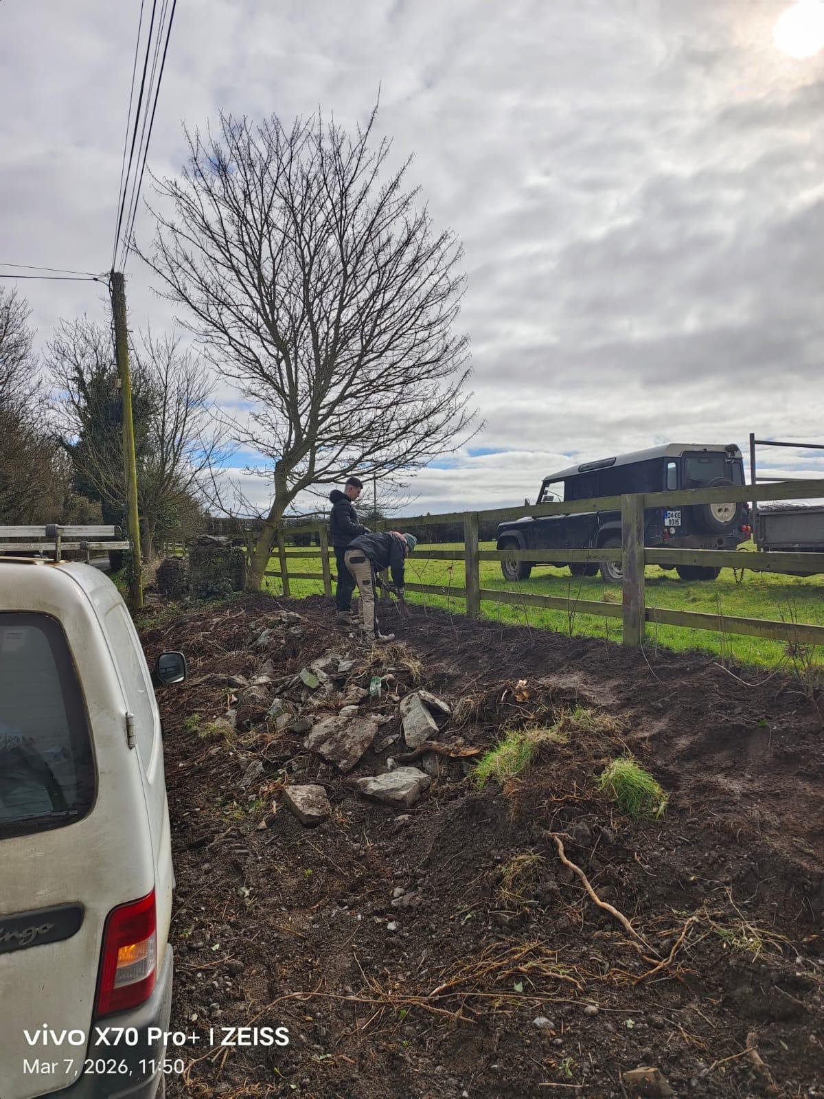 Over March, we have planted 1800 trees around the community. We will also be installing an owl box and numerous bird boxes in the area, working with local homes and a local scout group also. Colm and his team worked really well to get the planting done in time, and we have planted a rich mix of Irish hedgerow as well as fruit trees at the school and in some local homes.